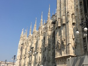 The Duomo is the largest church in Italy and fourth largest in the world. And I swear it looks like it’s made of marble lace. Well, lace with a ton of amazing, and often disturbing, sculptures all over it. (Like the woman with a knife in her neck!) I was genuinely overwhelmed by the beauty and age of it, which made me trembly inside. It was awesome in the truest sense of the word.